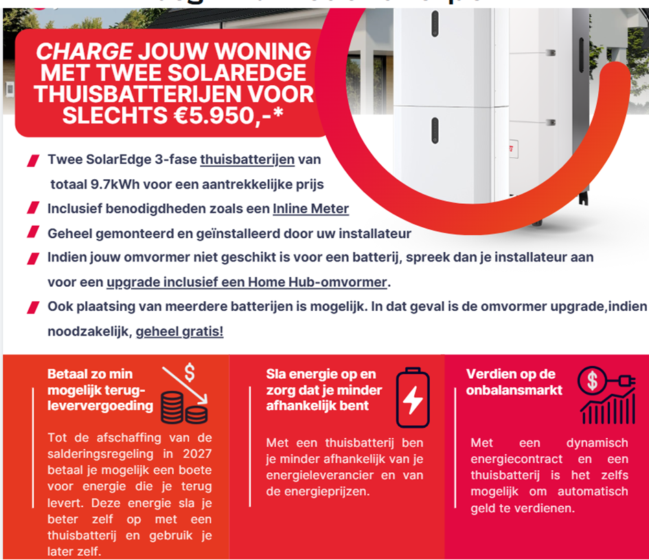 - Twee SolarEdge Home thuisbatterijen voor slechts €5.950,-*